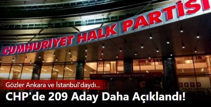 CHP'de Parti Meclisi toplantısının ardından yerel seçimler için 209 belediye başkan adayının daha ismi açıklandı. Alınan son kararlarla birlikte, içlerinde Antalya ve Sakarya'nın da olduğu 8'i büyükşehir, 13 il, 168 ilçe ve 20 belde belediye başkan adayı açıklandı. Buna göre büyükşehir belediyelerden; Antalya'da Muhittin Böcek, Denizli'de Bülent Nuri Çavuşoğlu, Diyarbakır'da Cafer Pekdemir, Erzurum'da Atlıhan Atila, Muğla'da Ahmet Aras, Sakarya'da Azize Çeroğlu, Trabzon'da Hasan Süha Saral ve Van'da ise Şükrü Şahar'ın gösterilmesine karar verildi.