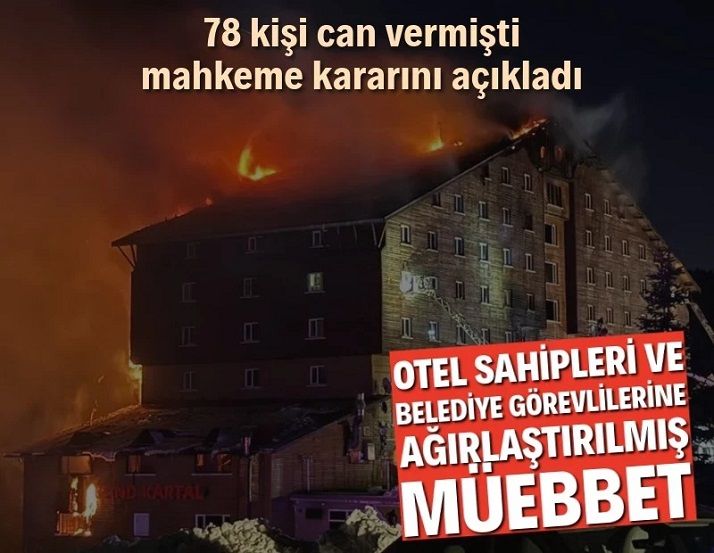 Bolu Kartalkaya Kayak Merkezi'nde 78 kişinin hayatını kaybettiği, 137 kişinin yaralandığı Grand Kartal Otel yangınına ilişkin, aralarında otelin sahibi ve belediye yetkililerinin de bulunduğu 20'si tutuklu 32 sanığın yargılandığı davanın üçüncü duruşmasında karar açıklandı.