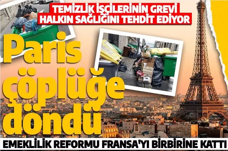 Fransa Cumhurbaşkanı Emmanuel Macron'un açıkladığı emeklilik reformunun ardından grevler halkın sağlığını da tehdit etmeye başladı. Başkent Paris'te 5 bin 400 ton çöp birikti.