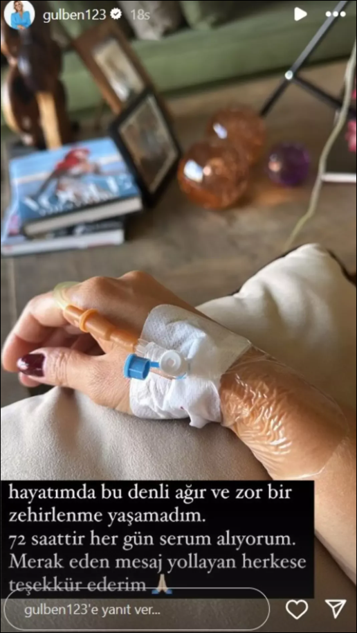 Elinde serumla paylaşım yapan ünlü isim zehirlendiğini açıkladı.