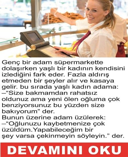 Bir şeyler alır ve kasaya gelir. bu sırada yaşlı kadın adama: