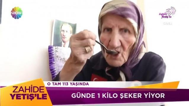 Günde 360 tane küp şeker yiyen kadının yaşını duyan şoke oluyor! Gençliğinden beri yüksek oranda şeker tükettiğini söyleyen Zeliha Teyze, uzun ömrünü şekere borçlu olduğunu söyledi.