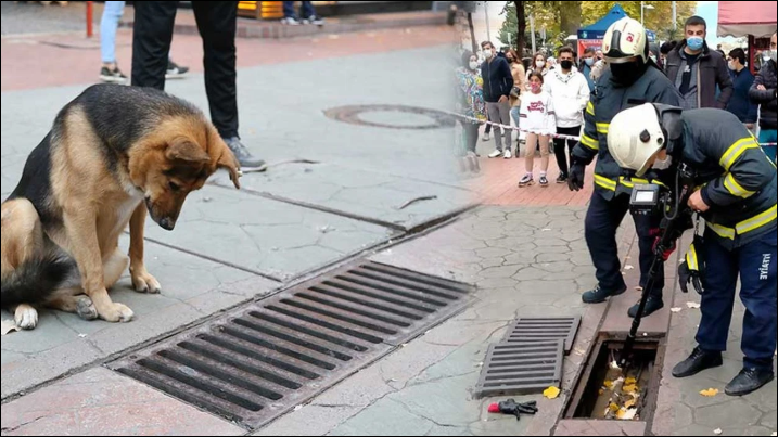 Kocaeli’nin İzmit ilçesinde bulunan bir caddede sürekli mazgala bakan köpek, esnafın dikkatini çekti. Esnafın belediyeye haber vermesiyle gelen itfaiye ekipleri mazgalı açınca köpeğin neden beklediğini de anlamış oldu.