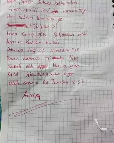 Notlarda, genç kadının eşi ve kayınvalidesi tarafından azarlanıp kötü muamele gördüğü, yaşadığı tüm zorluklara kızı için katlandığı ifadeleri yer aldı.