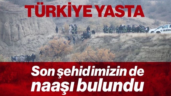 Milli Savunma Bakanlığı, Azerbaycan-Gürcistan sınırında düşen askeri kargo uçağının enkazında yapılan arama çalışmaları sonucu son şehidimizin naaşına da ulaşıldığını bildirdi.