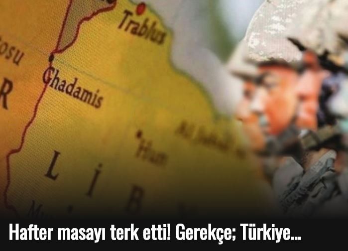Suudi Arabistan’a ait Al Arabiya kanalına göre; General Halife Hafter ateşkes anlaşmasını, Ankara’nın Libya’daki askerlerini geri çekmesine ve Trablus merkezli Ulusal Mutabakat Hükümeti (UMH) ile yapılan anlaşmaların geçersiz olduğuna dair maddeler içermemesi nedeniyle imzalamamaya karar verdi.