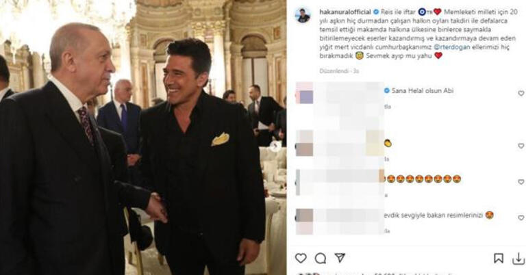 Hakan Ural Cumhurbaşkanı Recep Tayyip Erdoğan’la pozlarını sosyal medyadan paylaşarak yazdıkları ile gündem oldu. Ural, ” Reis ile iftar. Memleketi milleti için 20 yılı aşkın hiç durmadan çalışan halkın oyları takdiri ile defalarca temsil ettiği makamda halkına ülkesine binlerce saymakla bitirilemeyecek eserler kazandırmış ve kazandırmaya devam eden yiğit mert vicdanlı Cumhurbaşkanımız Erdoğan ellerimizi hiç bırakmadık. Sevmek ayıp mı yahu” şeklinde paylaşım yaptı.