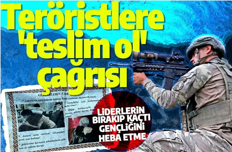 Teröristlere 'Teslim ol' çağrısı yapılan bildirilerde teslim olan PKK'lıların ailelerine kavuşma anları yer aldı. Kürtçe ve Türkçe basılan 2 ayrı bildiride, pişmanlık yasasına dikkat çekildi.