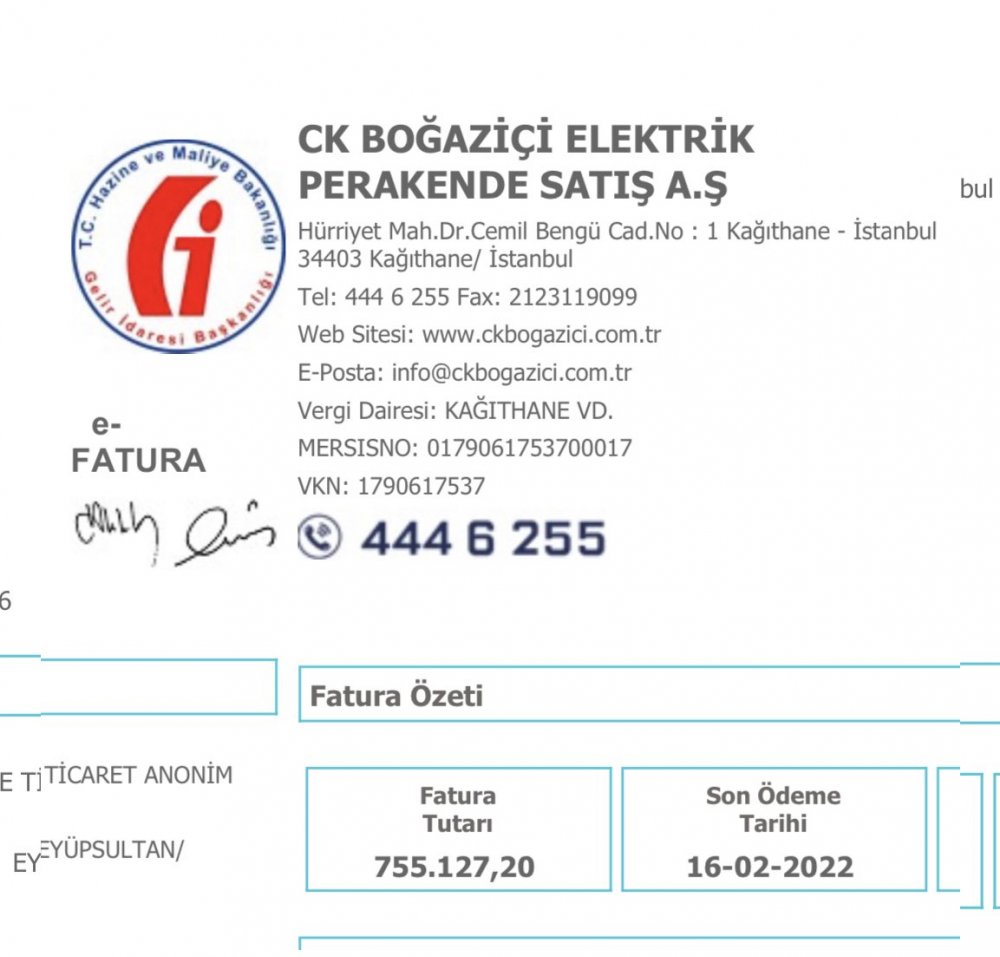 Kartal Halk Ekmek Fabrikası elektrik faturası: