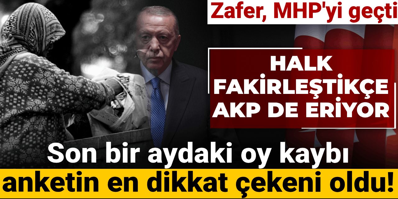 Anket sonuçları hemen hemen bütün araştırmalarda aynı çıkmaya devam ederken bu ankette dikkat çeken detay AKP'nin bir ay içerisinde yaşadığı oy kaybı oldu. Kararsızlar dağıtılmadan önce AKP'nin oy oranı yüzde 23,1 olarak gözüküyor. Anket verilerine göre AKP sadece bir ayda 3,6 puan oy kaybına uğradı.