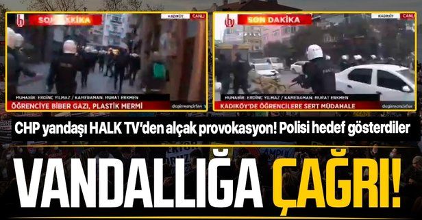 Ortalığı savaş alanına çevirme uğraşında olan eylemcilere polis müdahale ederken; Gezi Parkı olaylarında 24 saat canlı yayında halkı galeyana getiren ve CHP'ye yakınlığı ile bilinen Halk TV, bu olaylarda da provokasyon peşinde.