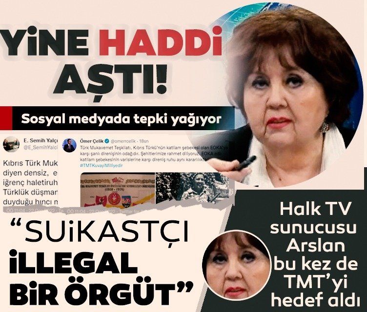 Kıbrıs Türklüğünün soykırımlara ve buna dayalı dayatmalara karşı varlık mücadelesini destansı bir şekilde çatısı altında sürdürdüğü Türk Mukavemet Teşkilatı’na (TMT) rezil tanımlamalarla dil uzatmak maksatlı bir eylemdir. Halk Tv ve Ayşenur Arslan’ın derhal özür dilemesi gerekir.