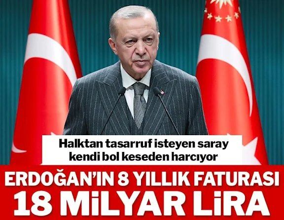 Sözcü'de yer alan habere göre, Cumhurbaşkanlığının faturasını çıkaran, CHP Adana milletvekili Burhanettin Bulut, Cumhuriyet tarihi boyunca görev yapan tüm Cumhurbaşkanları arasında en çok harcamayı Erdoğan'ın yaptığını belirtti. Saray'ın masraflarının her yıl arttığını kaydeden Bulut, “Sayıştay raporlarına göre, Cumhurbaşkanlığı'nın mutfaktan temizliğe, giyimden sağlığa kadar birçok kalemde yaptığı harcamalar katlandı. Halktan tasarruf isteyen Saray kendi itibarından ödün vermiyor. Krizin faturasını vatandaşın sırtına yüklüyor” dedi. Bulut, örtülü ödenek harcamalarına da dikkat çekti ve 2003 yılından bu yana “gizli hizmet gideri” olarak bütçeden 23 milyar 109 milyon lira harcandığını belirtti. Sayıştay'ın Cumhurbaşkanlığı 2021 yılı raporunda, Beştepe'nin günlük harcamasının 10 milyon 277 bini bulduğu belirlenmişti.