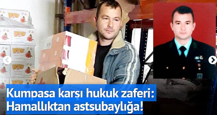 İzmir'deki, tüm sanıkların beraat ettiği askeri casusluk davasının soruşturmasında adı geçen, örgüt yöneticisi olduğu iddia edilen kadınla ilişkisi bulunduğu gerekçesiyle Türk Silahlı Kuvvetleri'nden (TSK) atılan, ailesini geçindirebilmek için sebze halinde hamallık yapmak zorunda kalan Astsubay Üstçavuş Önder Çayır, 5 yıldır verdiği hukuk mücadelesinde mutlu sona ulaştı. Görevine iade edilmesine karar verilen Çayır'ın, TSK'dan ayrı kaldığı süre boyunca alması gereken yaklaşık 250 bin TL'nin de ödenmesine hükmedildi. Halen hamallık yapan Çayır, mahkeme kararının bakanlığın onayıyla yürürlüğe girmesiyle üniformasına kavuşmayı sabırsızlıkla beklediğini söyledi.