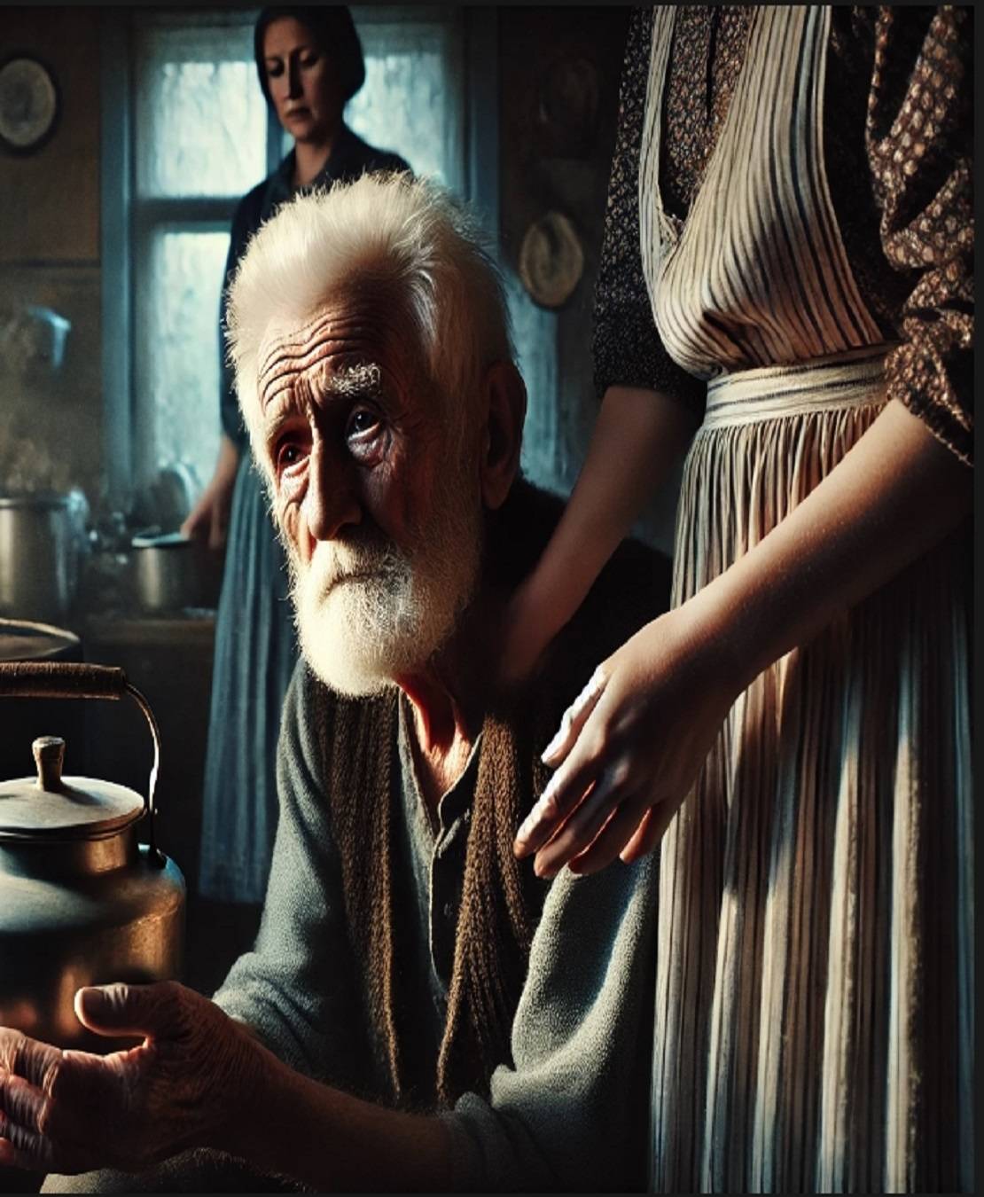 Oğlunun sesi odayı doldurunca, bir an sessizlik oldu. Gelin başını eğip sessizce geri çekildi, odayı terk etti. Oğlunun gözlerinde öfke ve şaşkınlık vardı. “Baba,” dedi hafif bir tonla, “ellerini göster.” Titreyen ellerini uzattım ona, kızarmış, sıcak sudan yanmıştı. Oğlum derin bir nefes aldı, “Sana bu yapılmamalıydı,” diye fısıldadı, gözlerinde suçluluk parıltısı. “Bunu nasıl gözden kaçırdım?”