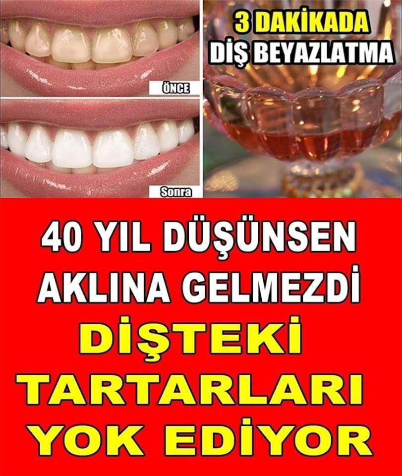 40 yıl düşünseniz aklınıza gelmez! Dişteki tartarları birkaç günde tamamen yok ediyor… Tartar birikiminden kaynaklanan kahverengi veya sarı dişleri kimse istemez. Fakat bu renk değişikliğinden tam olarak nasıl kurtulursunuz? Dişleri beyazlatmak için evde yapabileceğiniz birçok yöntem var.