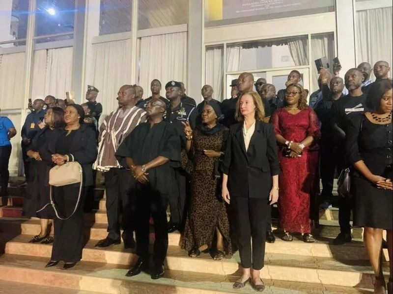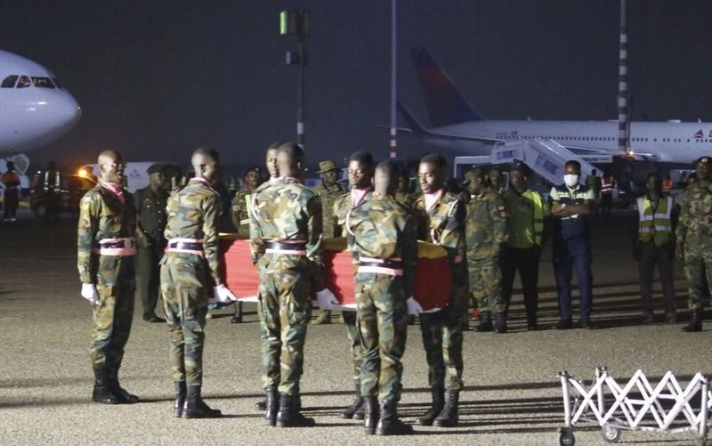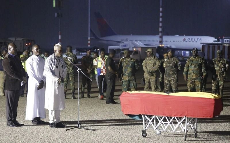 Havalimanından Devlet Başkanı Yardımcısı Mahamudu Bawumia'nın yanı sıra bakanlar, ailesi ve taraftarlarca alınan c-enaze, özel cenaze evine nakledildi.