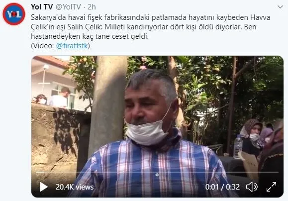 Sakarya'da havai fişek fabrikasındaki patlamada hayatını kaybeden Havva Çelik'in eşi Salih Çelik, acılı haldeyken bir muhabirin yanına gelerek kendisini bir takım sorular sorduğunu ifade etti.