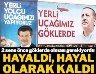 2011 ve 2015 yıllarında dönemin Başbakanı Recep Tayyip Erdoğan ile Ahmet Davutoğlu’nun fotoğraflarının da yer aldığı bilboardlara ‘Yerli uçağımız göklerde. Yerli yolcu uçağı yapıyoruz” yazılı afişler asılmış, iktidar bunu propaganda aracı olarak kullanmıştı.