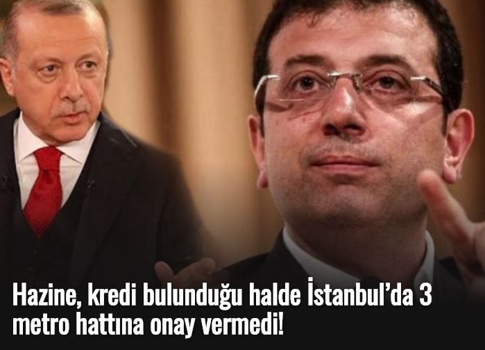 İstanbul Büyükşehir Belediye (İBB) Başkanı Ekrem İmamoğlu’nun kredi buldukları halde Hazine onayı alamadıkları için başlanamadığını açıkladığı 3 projenin; EminönüAlibeyköy Tramvay Hattı, BostancıDudullu Metro Hattı ve Yenidoğan Hastane Hattı olduğu öğrenildi. Cumhurbaşkanı Erdoğan’a metro çağrısı yapan İmamoğlu, “Bizim krediyi harekete geçirebilmemiz için Hazine onayı gerekiyor. Kredi imkanı var, biz buluyoruz. Sadece istediğimiz bir dokunuş” dedi.