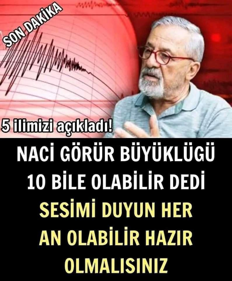 Naci Görür, katıldığı bir televizyon programında İstanbul, İzmir ve Tunceli’ye özel uyarılarda bulundu. “Doğu Anadolu Fayı uyanmak üzere” ifadelerini kullanan Görür, “Bağırıyorum Tunceli’ye dikkat edin diye. Bunu söylerken de laf olsun diye değil” dedi.