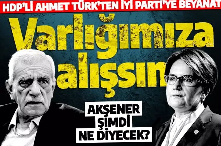 T24'ten Murat Sabuncu'ya demeç veren HDP'li Ahmet Türk, "Millet İttifakı'nın cumhurbaşkanı adayı Kemal Kılıçdaroğlu kazanırsa cumhurbaşkanı yardımcılarından biri Meral Akşener olacak. Milliyetçi gelenekten gelen bir kişi. Onun şu ana kadar götürdüğü tavrı nasıl buluyorsunuz?" sorusuna ise Ahmet Türk, İYİ Parti'nin ve koalisyondaki diğer partilerin kendilerinin varlığına alışması gerektiğini vurguladı.