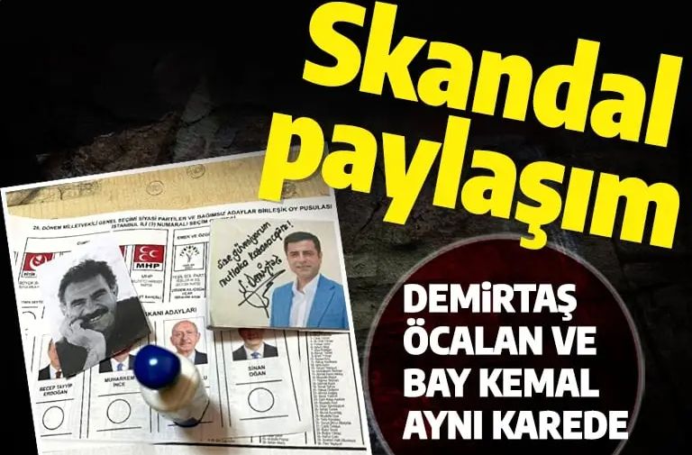 Oy kabinine girerken yanına terörist ele başı Abdullah Öcalan ve terör suçundan cezaevinde tutuklu olan HDP eski eşbaşkanı Selahattin Demirtaş'ın fotoğrafını alan HDP'li bir seçmen skandal bir paylaşımda buldu.