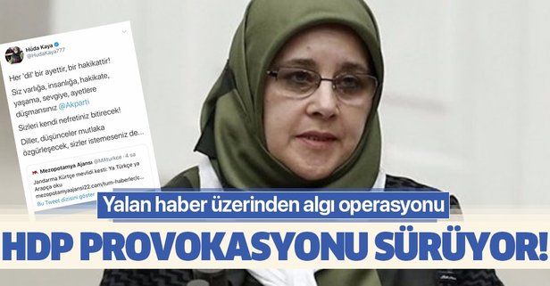 HDP İstanbul Milletvekili Hüda Kaya Mezopotamya Ajansı'nın yalan haberini sosyal paylaşım sitesi Twitter'daki şahsi hesabından paylaşarak algı operasyonu yaptı. Kaya "Diller, düşünceler mutlaka özgürleşecek, sizler istemeseniz de..." iddiasında bulundu.