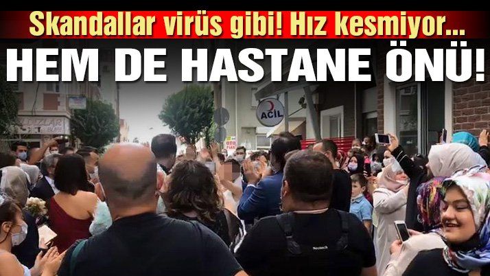Yakındaki özel hastanenin yatan hasta ve acil servis girişi yaklaşık yarım saat kapandı. Damat ve gelin sokakta oynarken, bazı yakınları da onlara para yapıştırdı, maske ve sosyal mesafe kuralları hiçe sayıldı. Gelin ve damadın minibüse binip ayrılmasıyla da kalabalık dağıldı.