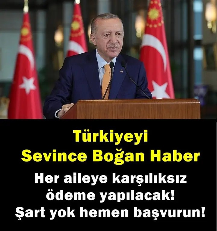 Paralar 12 Ay Boyunca Hesaplara Yatacak..Hane başına 7200 liraya kadar karşılıksız ödeme
