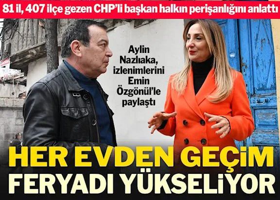 CHP Kadın Kolları Genel Başkanı Aylin Nazlıaka, 2,5 yıl içinde 81 il, 407 ilçe ve 23 belde dolaşıp, vatandaşların evlerine konuk oldu. Nazlıaka karşılaştığı ülke manzaralarını anlatırken, “Anneler çocuğunun beslenme çantasına, bayat ekmekleri ıslatıp koyuyor. Çocuğuna ilaç alabilmek için kulağındaki küpesini satan anne var. Buzdolabının fişi çekilmiş, çatı akıyor, çocuklar okul yerine tarlada'' dedi.