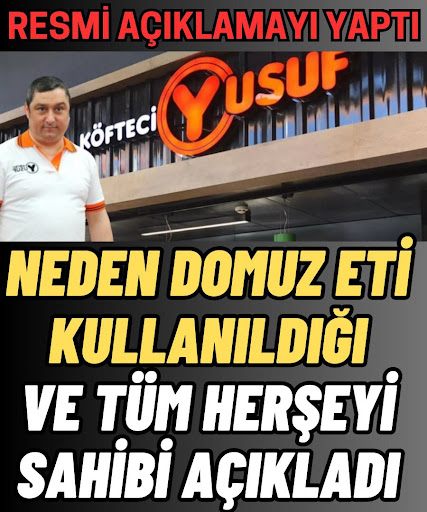 Tarım ve Orman Bakanlığı’nın muayene ve analiz raporuna göre Köfteci Yusuf’tan alınan numune örneklerinde köftelerde domuz eti tespit edilmişti. Türkiye’nin konuştuğu domuz eti skandalından iddiaların odağındaki Köfteci Yusuf’tan ilk açıklama geldi. Açıklamada, “Ürünlerimizde asla domuz eti kullanılmamıştır. Numune alma işlemleri esnasında hata yapıldı” denildi. Tarım Bakanlığı’nın gıda denetimlerinde domuz eti tespit ettiği işletmelerin gündeme gelmesiyle birlikte, sosyal medyada birçok spekülasyon yapıldı. Bu iddialar üzerine Köfteci Yusuf, avukatı aracılığıyla ilk kez açıklamada bulundu. Geçtiğimiz günlerde Tarım Bakanlığı tarafından yapılan açıklamada, Düzce’deki bir işletmenin ürünlerinde domuz eti tespit edildiği belirtildi. Sosyal medyada bu işletmenin ünlü bir köfte zinciri olduğu iddiaları üzerine, bakanlık tarafından yapılan yeni denetimlerde söz konusu zincirin farklı şubelerinde de domuz etine rastlandı. Ancak firmanın ismi açıklanmayınca vatandaşlar büyük tepki gösterdi. Bu gelişmelerin ardından Köfteci Yusuf’tan ilk açıklama geldi. ‘