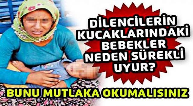 Her gün sokak ve caddelerde gezerken gördüğümüz dilencilerin kucağındaki küçük bebekler sürekli uyku modundalar. Neden sürekli uyuduklarını hiç düşündünüz mü? Okuduktan sonra lütfen paylaşalım. Bu konuda bilinçlenme ve hassasiyet oluşması için. Haberin detayı diğer sayfadadır. Diğer sayfaya geçmek için fotoğrafın üstüne tıklayınız… Her ülkede olduğu gibi bizim ülkemizde de dilenciler hayatın bir parçası. Hemen hemen birçok cadde, sokak ve köşe başında karşımıza çıkıverirler. İşte acı gerçek. Sokakta gördüğümüz dilendirilen bebekler sürekli uyuyor. Her zaman gördüğümüz bu sahnenin gerçek yüzünü gözler önüne seren bu yazı sosyal paylaşım sitelerinde sıkça paylaşılmıştı. İşte dilendirilen bebeklerin neden hep uyuduklarını tüm acımasızlığıyla yüzümüze çarpan o yazı Metro istasyonu yakınında yaşı tam olarak belli olmayan bir kadın oturuyor. Kadının saçı karışık ve kirli, başını kederli bir şekilde öne eğmiş. Yanında bir çanta duruyor. İnsanlar çantaya para atıyor. Kadının kucağında uyuyan iki yaşında bir bebek var. Bebek, kirli bir şapka ve kirli giysiler içinde habersizce uyuyor.