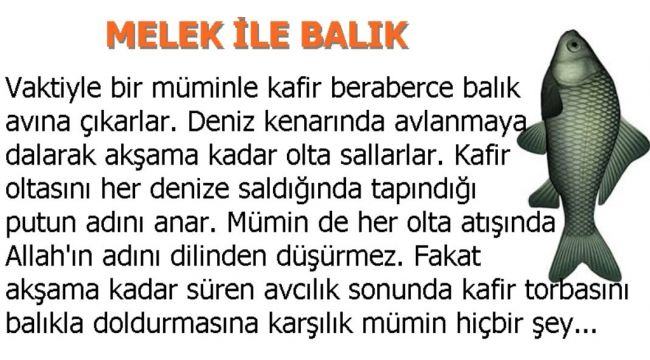 Vaktiyle bir müminle kafir beraberce balık avına çıkarlar. Deniz kenarında avlanmaya dalarak akşama kadar olta sallarlar.