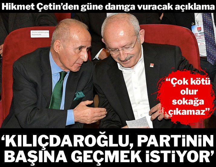''Bunu nasıl yorumluyorsunuz, Kemal Bey’i yakından tanıyorsunuz'' sorusuna Hikmet Çetin, “Ben onun tekrar partinin başına geçmek istediğini düşünüyorum. Ben öyle bir niyeti olduğunu zannediyorum'' karşılığını verdi.