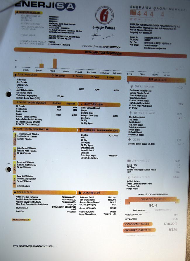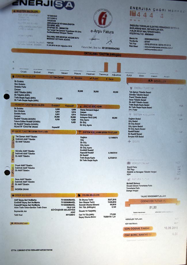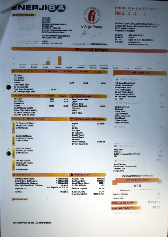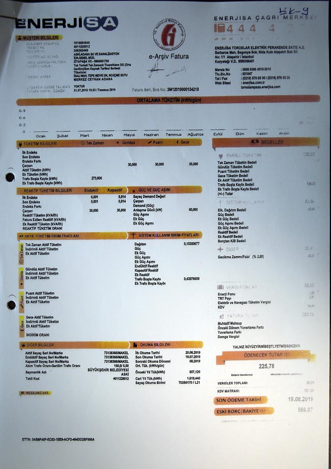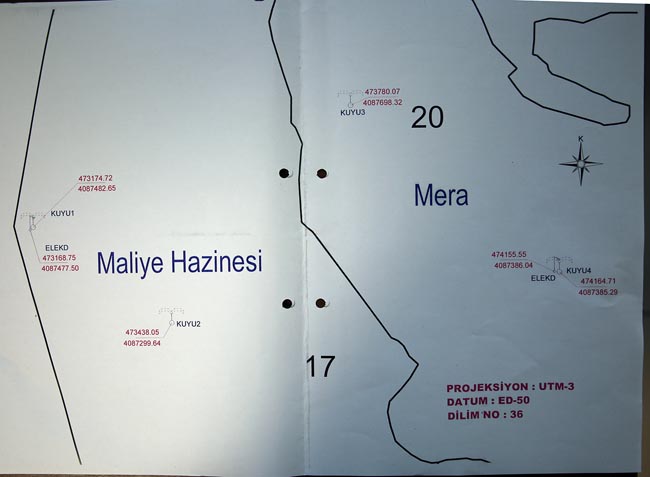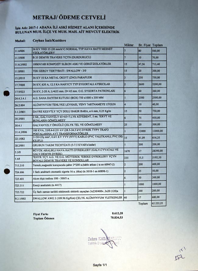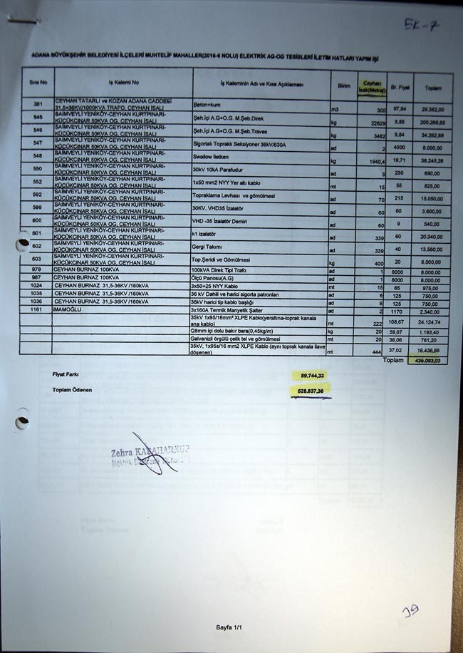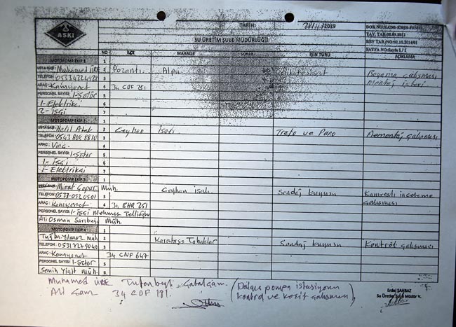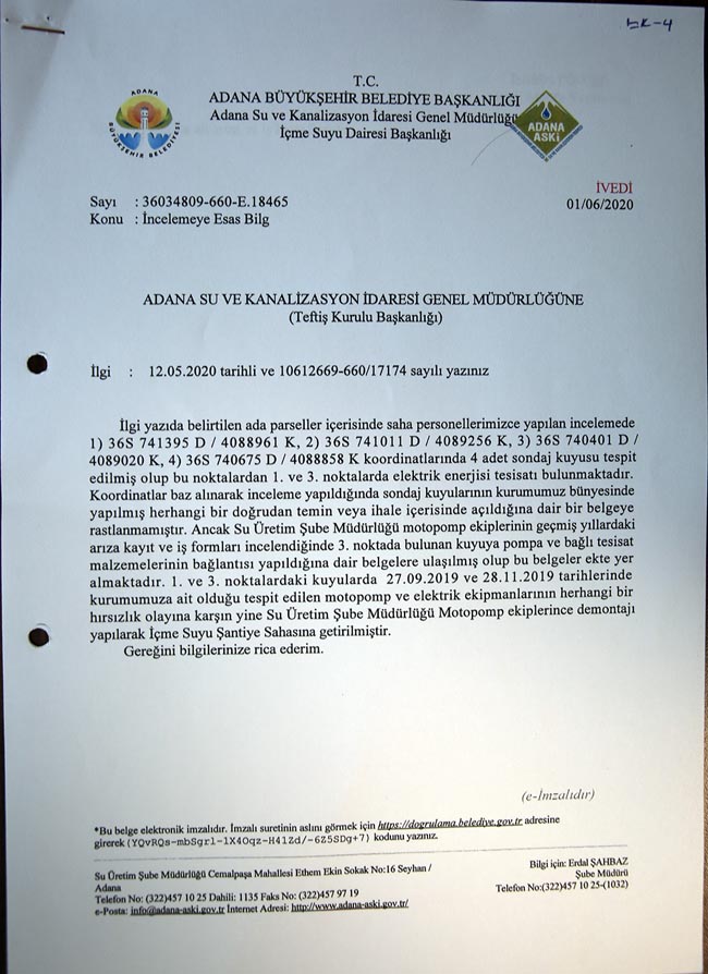 Bölgeye, belediye olanaklarıyla 596 bin 671 lira ödenerek çekilen elektrik nakil hattıyla, açılan su kuyularına ASKİ’ye ait dalgıç pompalar yerleştirildiği, trafo yapıldığı, enerji kullanma izni alındıktan gelen 3 bin 600 liralık elektrik faturasının dahi ASKİ’ye ödettirildiği belirlendi.