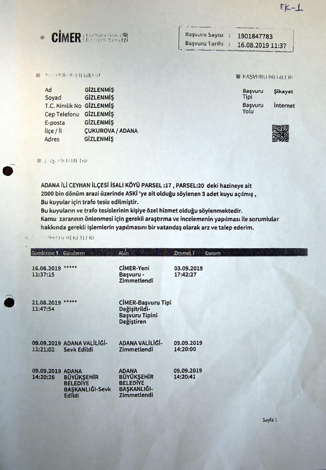 Ceyhan’ın KızıldereGündoğan ve İsalı köylerinde yaşayan köy muhtarları ve halkın gözlerinin önünde gerçekleşen ve yaklaşık 6 ay süren faaliyetlerde, kendilerine söz verildiği üzere, yaşadıkları köylere su getirilmediği ama hazineye ait, fakat Sözlü ailesi tarafından işgal edilen arazide, belediyeye ait araçlarla her türlü hizmetin verilip, belediye ait iş makineleriyle çalışma yapıldığını söylediler. Bölge halkına su getirileceği vaadiyle açılan kuyuların, köylerin sakinlerine hizmet vermediği belirlendi.