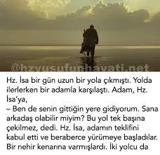 Hz. İsa bir gün insanları hak ve hakikate çağırmak için uzun bir yola çıkmıştı. Yolda ilerlerken bir adamla karşılaştı. Adam, Hz. İsa’ya,