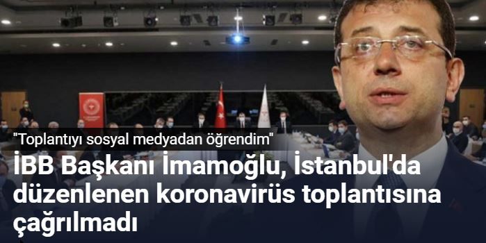 Sağlık Bakanı Fahrettin Koca yeni tip koronavirüs salgınının İstanbul'daki seyrinin konuşulduğu bir toplantı düzenlendiğini açıkladı. Birçok isimin yer aldığı toplantıda İstanbul Büyükşehir Belediyesi Başkanı Ekrem İmamoğlu'nun olmaması tepki toplarken İmamoğlu'nun toplantıyı sosyal medyadan öğrendiği açıklandı.