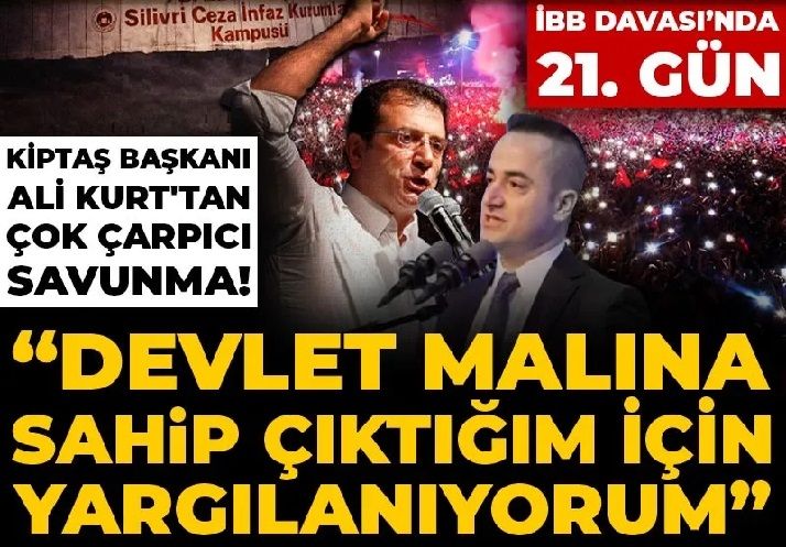 İBB Davası'nda savunma yapan KİPTAŞ Yönetim Kurulu Başkanı Ali Kurt, hakkında bir tane olumsuz MASAK raporu bulunmadığını söyledi. Dijital bilgilerini verdiğini belirten Kurt, suç unsuru bulunmadığını vurguladı. Kurt, "Ciddi hataları olan bilirkişi raporları var. Benimle ilgili olumsuz bir tane rapor yok. Olumlu rapor var, dosyaya konulmamış. Olumsuz bir tane delil yok" dedi.