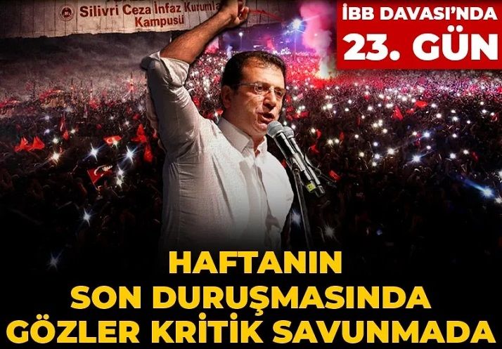 Bugün bu haftanın son duruşma günü. Silivri'de görülecek 23. duruşma İmamoğlu'nun yakın koruması Mustafa Akın’ın avukatlarının savunmasıyla devam edecek. Akın'ın avukatlarının savunmasının ardından İBB güvenlik görevlisi Çağlar Türkmen'in savunmasının alınması bekleniyor.