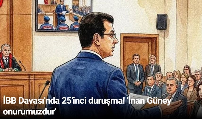 CHP'nin cumhurbaşkanı adayı, İBB Başkanı Ekrem İmamoğlu'nun da arasında bulunduğu İBB Davası'nın duruşması 25. gününde, İstanbul 40. Ağır Ceza Mahkemesi'nce, Marmara Kapalı Ceza İnfaz Kurumunun karşısındaki 1 No'lu salonda, devam ediyor.