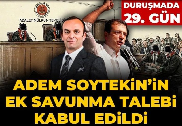 Soytekin'in avukatı kürsüye gelmeden önce duruşmada, itirafçı Adem Soytekin ek savunma hakkı talep etti. Mahkeme başkanı Soytekin'e ek savunma hakkı verildiğini açıkladı. İBB Davası, Soytekin'in avukatı Ahmet Burak Bilgin'in savunmasıyla başladı.