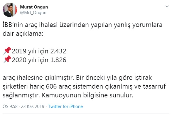 "İBB’nin araç ihalesi üzerinden yapılan yanlış yorumlara dair açıklama: