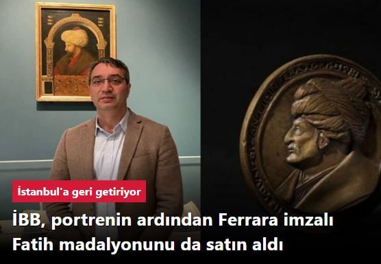 İstanbul Büyükşehir Belediyesi, İtalyan ressam Bellini'nin yaptığı Fatih Sultan Mehmet portresinin ardından bu kez de Ferrera tarafından yapılan madalyonu İstanbul'a geri getiriyor.