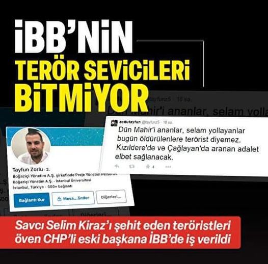 Ekrem İmamoğlu tarafından belediye iştiraklerinden iştiraklerinden Boğaziçi Yönetim A.Ş. iş verildiği öğrenilen Tayfun Zorlu’nun terör sevici paylaşımlar yaptığı belirlendi.