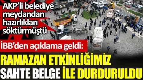 İstanbul Büyükşehir Belediyesi (İBB), Üsküdar Mimar Sinan Meydanı’ndaki ramazan hazırlıklarına Üsküdar Belediyesi'nin sahte belge ile müdahale ettiğini açıkladı.