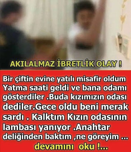 Bir süre önce, bir çiftin evine yatılı misafir oldum. Yatma saati geldiğinde bana odamı gösterdiler. Odanın kapısını açtıklarında, "Burası kızımızın odası," dediler. Gece ilerledikçe, bir merak sardı beni. Gözlerim uykusuz bir şekilde odada gezindi ve birden fark ettim ki, kızlarının odasının lambası yanıyordu. İçimdeki merak daha da arttı. Yavaşça kalkıp, kapısına yaklaştım ve anahtar deliğinden içeriye bakmak istedim. Ne göreceğimi bilemezdim...Bir gün, özel bir iş nedeniyle yolda kalmış ve bu çiftin evine sığınmıştım. Durumumu açıkladım, onlar da sabah yardım çağırana kadar evlerinde kalmamda ısrar ettiler. İlk başta tekliflerine çekindim, ama onların samimiyetine inanarak kabul ettim. Akşam yemeği yedikten sonra, beni yatacağım odaya götürdüler. Odaya doğru giderken, geçmek zorunda olduğumuz bir kapının önünden geçtik. O sırada dikkatimi çeken bir şey vardı; her şeyin kırmızıya boyandığını fark ettim. Bu durum, içimi kemirmeye başlamıştı. O kırmızı rengin, bana farklı bir şey çağrıştırmaya başladığını hissettim. Ama ne?