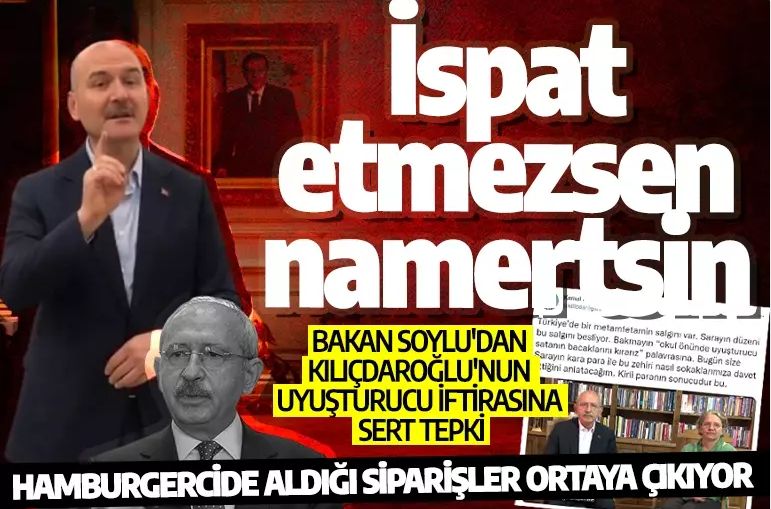 Türk Polis Teşkilatı ve Jandarma Teşkilatı hakkında yaptığı "Uyuşturucu paralarını Türkiye'nin cari açığının finansmanında kullandılar" iftirasını ortaya atan ve asılsız iddialarla gündemi manipüle eden CHP Genel Başkanı Kemal Kılıçdaroğlu’na İçişleri Bakanı Süleyman Soylu, yaptığı paylaşımla çok sert gösterdi.