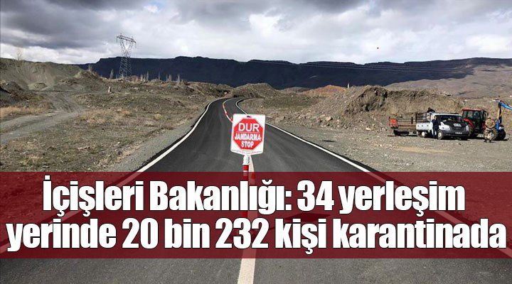 İçişleri Bakanlığı, yeni tip koronavirüs (Covid19) salgını nedeniyle bugün itibarıyla 19 ildeki 34 yerleşim yerinde karantina tedbirinin uygulandığını, buralarda toplam 20 bin 232 kişinin yaşadığını bildirdi.
